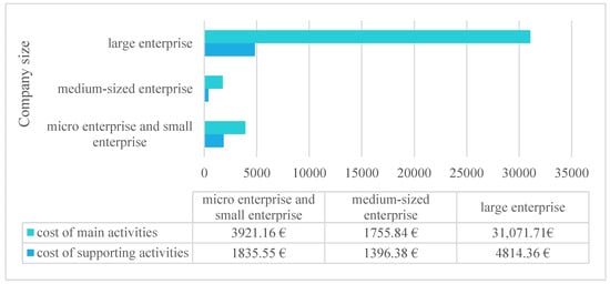 As shown in Figure 2, the costs of core activities exceeded the costs of supporting activities in the analyzed businesses of all size categories. At the same time, costs of supporting activities were high in large companies over the period under review. Figure 1 also shows that the average cost of quality in micro and small enterprises was twice as high as in medium-sized enterprises. Large companies often have higher costs of supporting activities because they are usually more complex and extensive than smaller businesses. In addition, there may be more regulatory requirements for large companies to comply with, which requires high compliance and implementation costs. The investments in these activities would be quite high as they may require employment of skilled and qualified workers, the purchase of expensive software and hardware tools, payment for third party services, etc. Large businesses also often perform more extensive and complex operations that require administration and higher investment in supporting activities. In addition, the analysis of the average cost of quality showed that the average cost of quality in micro and small enterprises was two times higher than in medium-sized enterprises. This may be due to the fact that small enterprises do not have the same financial resources as large enterprises and, therefore, cannot spend that much on quality improvement. In addition, micro and small enterprises may be more dependent on manual labor, which may increase the cost of quality, as they depend on the skills and qualification of their workers.