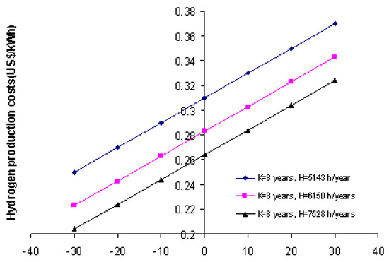 Variation in hydrogen production costs according to the main variables studied.
