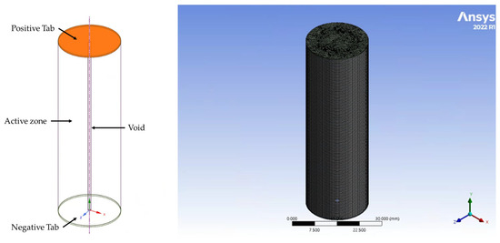 Simplified cell geometry and mesh of the NCM811-21700 cylindrical cell.