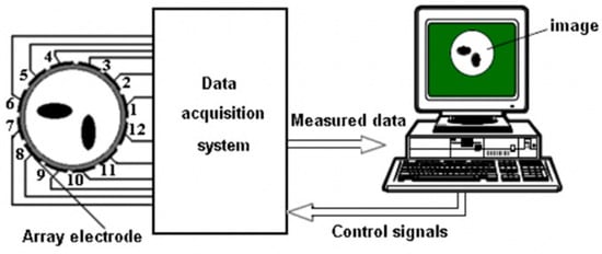 - York, T. Status of electrical tomography in industrial applications. J. Electron. Imaging 2001, 10, 608. [Google Scholar] [CrossRef]
