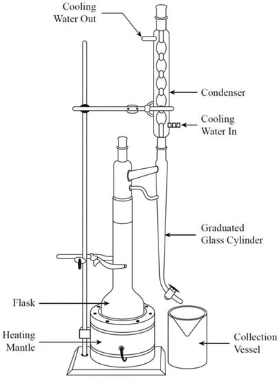 - Veillet, S.; Tomao, V.; Visinoni, F.; Chemat, F. New and rapid analytical procedure for water content determination: Microwave accelerated Dean-Stark. Anal. Chim. Acta 2009, 632, 203–207. [Google Scholar] [CrossRef] [PubMed]