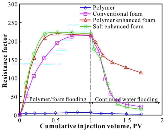 - Zhu, T.; Ogbe, D.O.; Khataniar, S. Improving the foam performance for mobility control and improved sweep efficiency in gas flooding. Ind. Eng. Chem. Res. 2004, 43, 4413–4421. [Google Scholar] [CrossRef]