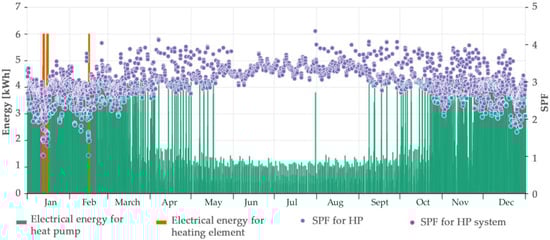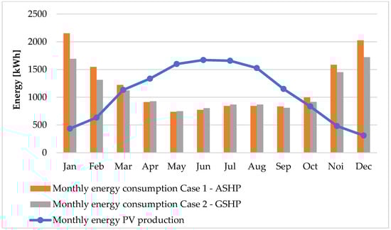 According to EU regulations [,], solar energy will be the key to achieving the goal of reducing dependence on fossil fuels, being able to supply a substantial part of the heat and electricity demand of a building by using photovoltaic systems and heat pumps. Additionally, the expansion of the use of heat pumps should be addressed in parallel with the increase in the number of installed solar PV systems, as the combination of them is considered to be the most energy-efficient solution [].