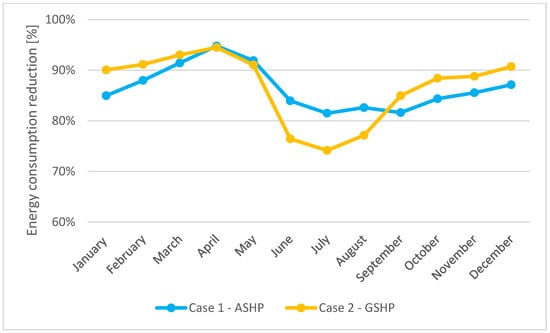 Based on the simulations performed with GeoT*SOL, the primary energy savings and avoided CO2 emissions determined for the two heat pump systems, compared to a classic heating system, revealed primary energy reductions of over 9920 kWh for ASHP and 13,590 kWh for GSHP and CO2 emissions reductions of over 2450 kgCO2eq for ASHP and 3360 kgCO2eq for GSHP.