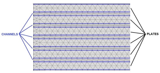 The Q functions were derived using specialized software that identifies the closest mathematical representation to the input table function. These functions were generated based on experimental data previously published in the literature. Table 2 contains the mathematical expressions corresponding to the various investigated pressure loads. To solve the equations of the model, the finite element method was employed, and the regenerator underwent meshing using the free triangular meshing approach (depicted in Figure 3).