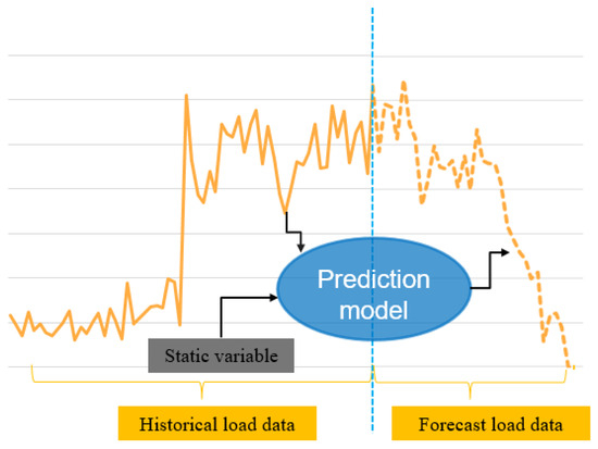 Load forecasting refers to mining the intrinsic connection between the load data and different influencing factors from the changes in the power load itself, weather, date type, economy and other factors to find the impact of the past load change law on the future load value [1] and then be able to more accurately make predictions about the future load. As shown in Figure 1, the load volume of the future load data is modeled by analyzing the characteristics of the historical load data (including static characteristics of load data as well as dynamic time-series characteristics). Power system load forecasting can be divided into long-term, medium-term, short-term and ultra short-term according to the forecasting time. Short-term power load forecasting is the most critical type of forecasting in the power system. It involves forecasting the power load in the next few hours, one day to several days, and its accuracy directly affects the safe and stable operation and economy of the power system. Accurate short-term load forecasting is very important to improve the operation efficiency of power operators. It can help each power plant reasonably arrange the schedule and weekly plan, optimize the power generation plan, and avoid the occurrence of surplus or shortage. Through accurate prediction, power operators can better control the balance of supply and demand, adjust power production and consumption strategies so as to improve the operation efficiency and economy of the power system.