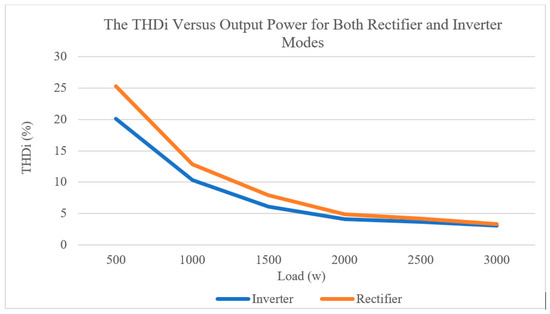 The simulated total harmonic distortion THDi for both rectifier and inverter operations.