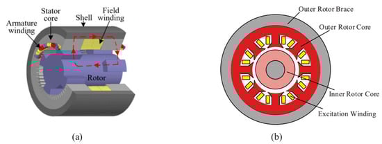 Structures of (a) a homopolar inductor machine [30] and (b) a dual-rotor induction motor [37].
