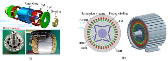 Structures of (a) a PMSM [58] and (b) a bearingless PMSM [47].