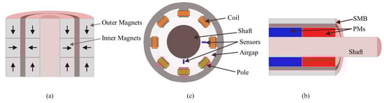 Structures of bearings: (a) a permanent-magnet bearing [68], (b) an active magnetic bearing [69], (c) a superconducting magnetic bearing [70].