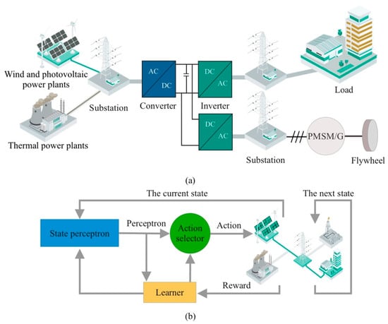 - Yin, L.; Li, Y. Fuzzy vector reinforcement learning algorithm for generation control of power systems considering flywheel energy storage. Appl. Soft Comput. 2022, 125, 109149. [Google Scholar] [CrossRef]