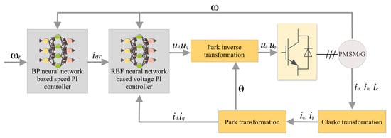 Control strategies for FESSs are crucial to ensuring the optimal operation, efficiency, and reliability of these systems. Control strategies for FESSs, including the speed control strategy for FESSs based on proportional-integral (PI) direct torque control (DTC) as well as intelligent nonlinear adaptive controllers with excellent noise immunity and dynamic adaptive control for FESSs, are discussed in [49,59,60,61]. Furthermore, recent studies have been conducted on DFIM power control strategies based on artificial neural networks (ANN) as well as the attitude control strategy based on small induction BLDC motors to achieve accurate control of the braking torque of the flywheel system [62]. Control strategies for PM motors are also investigated. These include model predictive control (MPC) strategies under the influence of uncertainty; speed control with nonlinear MPC control strategies; DC bus voltage fast control strategies for medium and high-speed PMSM/Gs for FESSs; modeling of double-air-gap AFPMMs with weak magnetic operation and sensorless DTC; and an optimal energy-harvesting strategy based on a high-speed BLDC generator [63,64,65,66,67].