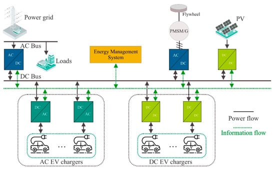 - Amry, Y.; Elbouchikhi, E.; Le Gall, F.; Ghogho, M.; El Hani, S. Optimal sizing and energy management strategy for EV workplace charging station considering PV and flywheel energy storage system. J. Energy Storage 2023, 62, 106937. [Google Scholar] [CrossRef]