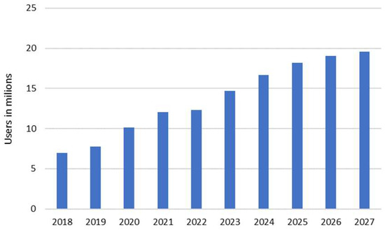 The number of online food delivery users in Poland from 2018 to 2027 (in millions). Source: own elaboration.