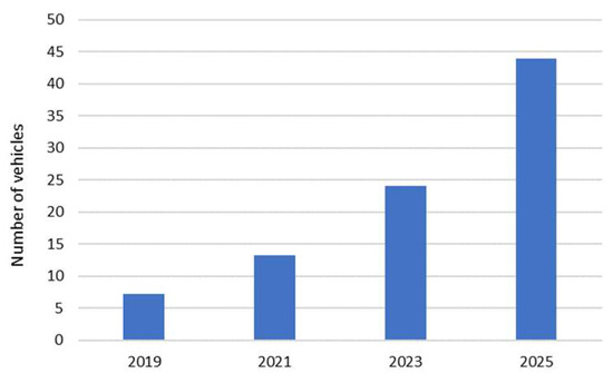 Figure 2 describes the number of electric scooters in Poland. Based on data from the Statista platform, there is, and will be, an upward trend of almost twofold over two years.