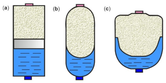HPA diagrams: (a) piston, (b) bladder, and (c) diaphragm.