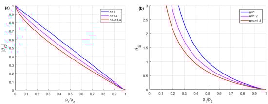 The size of the HPA depends on many different variables; thus, it is best to use methods to select them on the basis of thermodynamic principles. The method of selecting HPA is presented when only the initial parameters, such as the charging volume V0 at the pressure p0, are known. This method is used to determine the operating and energy parameters of HPA and then to select an HPA from the manufacturers’ catalogues. Figure 11 shows the pressure–volume diagrams of the gas compression and expansion of an ideal gas (N2 nitrogen) in an HPA according to adiabatic (a), isothermal (i), and polytropic (p) processes.
