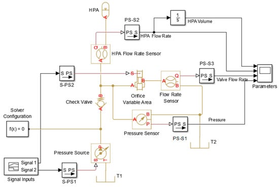 In HPAs, there is a balance between the pressure of the hydraulic oil and the counter pressure generated by the gas. The HPA oil chamber is connected to the hydraulic circuit, which is filled with oil under increasing pressure, while simultaneously pressing the separating element compresses the gas. With a decrease in hydraulic pressure, the compressed gas expands, pushing the accumulated oil into the hydraulic system. To ensure safe operation of the HPA as a pressure device, a shut-off block is used. Safety and shut-off blocks are elements of hydraulic equipment that are used to protect overpressure on the fluid side and isolate and relieve the hydraulic accumulator. The safety and shut-off blocks of the accumulator take into account the applicable safety regulations according to the ISO standard [29]. Safety shut-off blocks are classified according to the Pressure Equipment Directive 2014/68/EU Article 4, Section 3 [30]. The basic type of safety and shut-off block has a manually operated pressure release valve and a direct-acting pressure relief valve. Another type of safety and shut-off block has a solenoid-operated two-way directional valve for the automatic pressure release of the accumulator and hydraulic system [31].