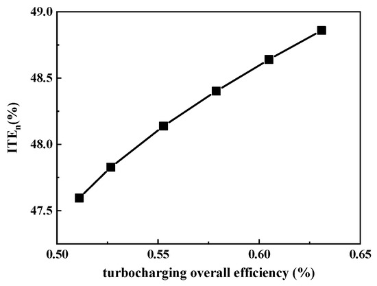 The effect of turbocharging overall efficiency on ITEn under a 20 MPa PCP limitation.
