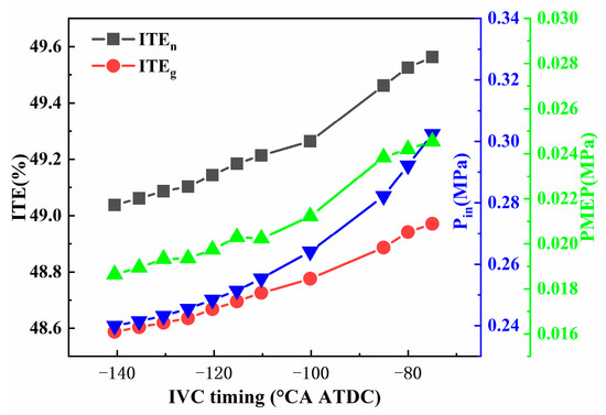 The mitigation effect of late IVC timing on Pin, corresponding ITEn as well as PMEP under a 20 MPa PCP limitation.