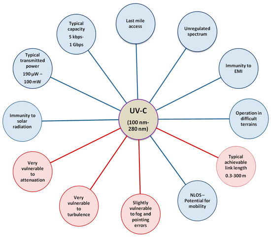 - Vavoulas, A.; Sandalidis, H.G.; Chatzidiamantis, N.D.; Xu, Z.; Karagiannidis, G.K. A survey on ultraviolet C-band (UV-C) communications. IEEE Commun. Surv. Tutor. 2019, 21, 2111–2133. [Google Scholar] [CrossRef]