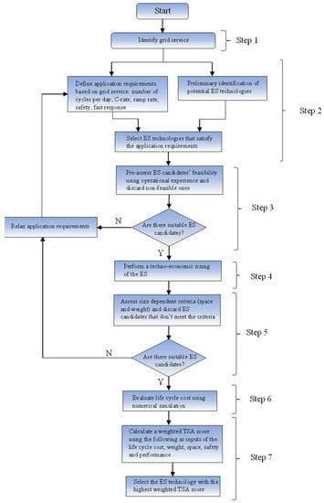 The technology suitability assessment procedure is a systematic way of selecting the most suitable ES technology (battery chemistry) based on some criteria. The considered TSA procedure was presented in [10] and is here recalled for the sake of completeness. It consists of seven steps.