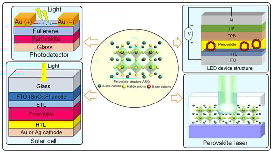 - Dong, H.; Ran, C.; Gao, W.; Li, M.; Xia, Y.; Huang, W. Metal Halide Perovskite for next-generation optoelectronics: Progresses and prospects. eLight 2023, 3, 3. [Google Scholar] [CrossRef]