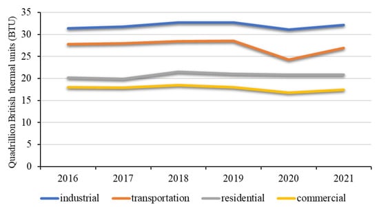 - Marohl, B.; Comstock, O. EIA: U.S. Energy Consumption in April 2020 Fell to Its Lowest Level in More than 30 Years. Fuels Market News. 2020. Available online: https://fuelsmarketnews.com/eia-u-s-energy-consumption-in-april-2020-fell-to-its-lowest-level-in-more-than-30-years/ (accessed on 15 November 2022).
