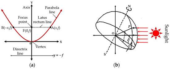 2.1. Basic Concepts of the Parabola and Earth–Sun Angles