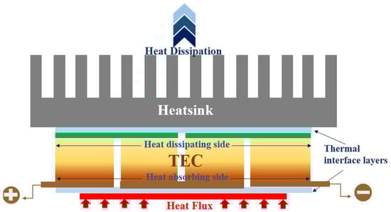 Thermoelectric cooling (TEC) has emerged as a promising cooling technique for electronic packages. Figure 5 provides a schematic view of the thermoelectric cooling system using a heatsink for a higher thermal performance.