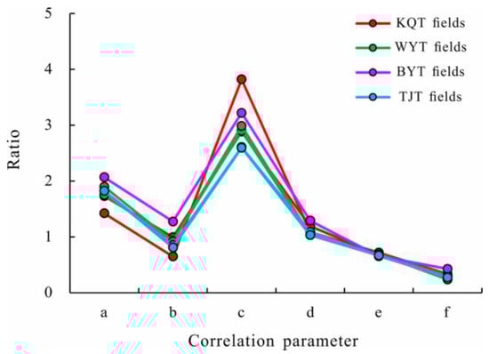Fingerprint parameter distribution characteristics of the oil’s light hydrocarbon compounds. a, 2-MC5/3-MC5; b, nC6/(MCyC5 + 2,2-DMC5); c, 2-MC6/2,3-DMC5; d, 3-MC6/(1,1-DMCyC5 + 1,c3-DMCyC5); e, 1,t3-DMCyC5/1t2-DMCyC5; f, nC7/(1,1,3-TMCyC5 + MCyC6).