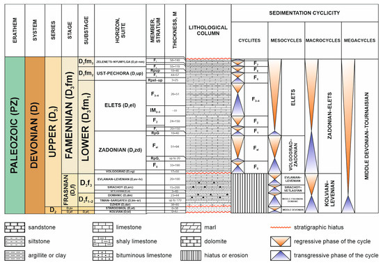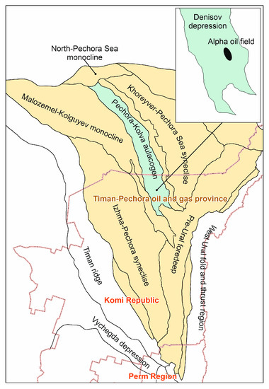 The Alpha field is located in the Timan-Pechora oil and gas province, on the territory of the Denisovsky Depression (Figure 1). Reef structures were widespread in the area during the Yelets and Zadonian times.