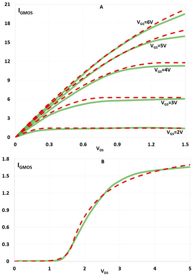 The following models have been developed for HEMT devices; after that, they have been successfully used for SiC MOSFETs. The models based on the Curtice one [26] achieve excellent results for GaN HEMT and SiC MOSFET [27] when implemented in the GMOS: