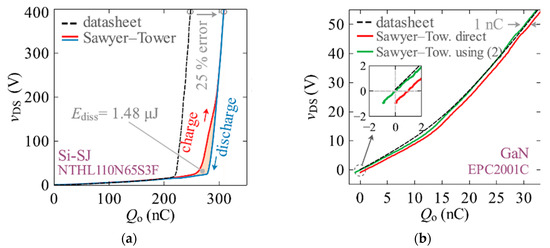 - Perera, N.; Kampitsis, G.; van Erp, R.; Ancay, J.; Jafari, A.; Nikoo, M.S.; Matioli, E. Analysis of Large-Signal Output Capacitance of Transistors Using Sawyer–Tower Circuit. IEEE J. Emerg. Sel. Top. Power Electron. 2021, 9, 3647–3656. [Google Scholar] [CrossRef]