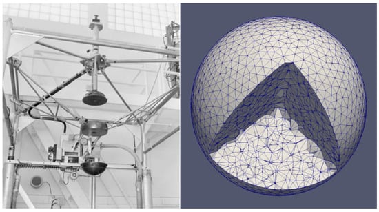 Godiva-I is a fast pulsed reactor with spherical high-enriched uranium; in this paper, the external supporting structure is neglected, and the three parts of the Godiva-I reactor, namely the upper, middle, and lower parts, are considered as a complete sphere. It is designed with two independent emergency shutdown mechanisms, with the upper and lower parts being tele-scoped through the cylinder and the middle part fixed on the steel pipe support. The fuel used in the reactor is highly enriched cast uranium metal, with a density of 18.7398 g/cm3 and 235U enrichment of 93.8%. The core has a radius of 8.7407 cm and a mass of 52.42 kg [,]. The specific physical properties of the fuel and its units are provided in Table 1, while the laboratory schematic and the meshing model are illustrated in Figure 1.