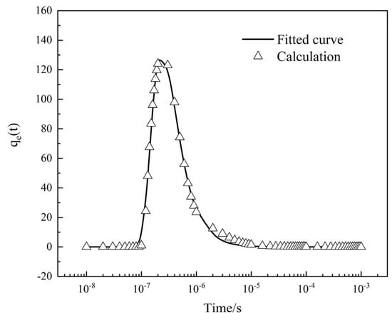 Since and have already been calculated, a leakage neutron equivalent source can be found using the above equation. The results of the leakage neutron equivalent source calculation are shown in Figure 9. The reflected neutrons peak at about 0.2 μs, and most of the reflected neutrons return to the core within 1 μs; the subsequently reflected neutrons take a longer time to return to the core. In order to calculate the burst transient process containing the reflected neutron pulse from the wall, it is necessary to obtain the equivalent source of all leaking neutrons. Set as the number of neutrons in the core at time , then the number of leakage neutrons at time is . Therefore, the total equivalent source at time t is: