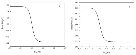 Replace Equation (12) with Equation (16) for the reactivity change considering inertial effects to re-solve the point reactor kinetic equation, and then the pulse waveform after taking inertia effects into account can be obtained.