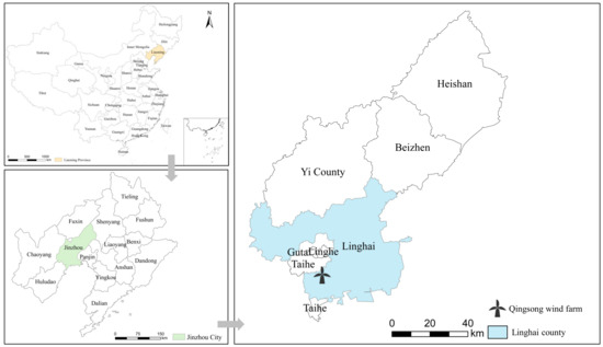 - Douding.com. Announcement of Environmental Protection Acceptance Report for the Completion of Guodian Linghai (Qingsong) Wind Farm (49.5 MW). 2019. Available online: https://www.docin.com/p-2260502273.html (accessed on 15 March 2023).