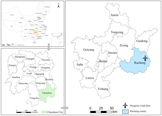 - National Construction Project Environmental Information Publicity Platform. Announcement of Environmental Protection Acceptance for the Completed Hougu’ao Wind Farm Project in Rucheng County, Chenzhou City, Hunan Province. 2022. Available online: https://www.eiacloud.com/gs/detail/2?id=21011plwA6 (accessed on 15 March 2023).