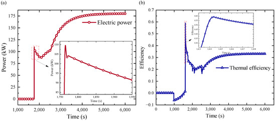 Performance parameters of the system: (a) electric power; (b) thermal efficiency.