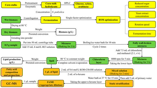 - Huang, X.; Yun, D.; Liao, X.; Bo, P.; He, Y.; Ma, C. Microbial lipid production from enzymatic hydrolysate of corn stover pretreated by combining with biological pretreatment and alkalic salt soaking. Ind. Crops Prod. 2018, 124, 487–494. [Google Scholar]