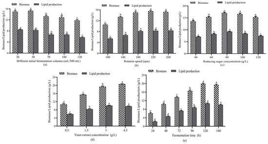2.3. Effect of Major Fermentation Parameters on Biomass and Lipid Production