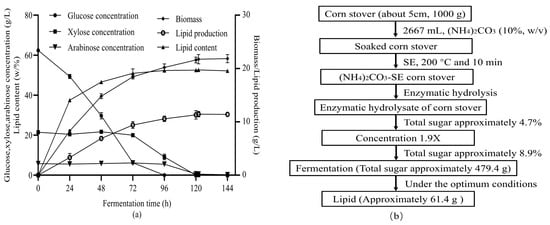 - Xu, H.; Zhao, N.; Yao, H.Y.; Qin, H.; Zeng, J.; Ran, Y.L.; Yang, Y.B.; Qiao, D.R.; Cao, Y. Lipid production from corn stover by a cost-efficient system featuring ammonium carbonate-steam explosion and recirculating enzymatic hydrolysis. Biomass Bioenergy 2019, 120, 387–395. [Google Scholar] [CrossRef]