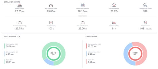 - The PV farm’s estimated annual energy production is 28.10 megawatt-hours (MWh). This figure indicates the total amount of electricity the system is expected to generate over the course of a year under average sunlight conditions (Figure 4).