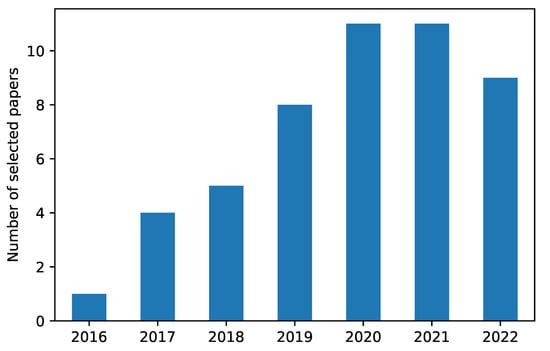 In Figure 1, the number of selected works are presented by year of publication from 2016 to September 2022. Note that there is an increase in the number of works over the years in the published investigations, showing the growing appeal for the theme.