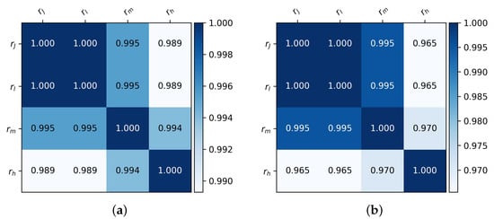 This coefficient is asymmetric, with the first ranking being the reference ranking. The score is closely related to the ranking positions on which differences occur, with the top ranking positions being the most significant [,]. The coefficient is defined as (20):