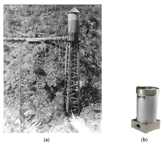 Old and new: (a) 33 m head, river-charged hydraulic air compressor in Ainsworth, British Colombia, in 1898 and (b) a 200 mm bore air–oil cylinder [61].