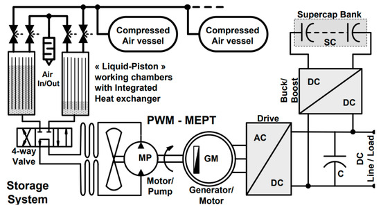 - Lemofouet, S.; Rufer, A.; Cyphelly, I.; Barrade, P.; Grasser, F. Principle of a Hybrid Compressed Air and Supercapacitors Energy Storage system with Maximum Efficiency Point Tracking; Swiss Federal Institute of Technology: Lausanne, Switzerland, 2003. [Google Scholar]