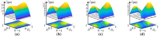 Current stress under the full operational area: (a) m = 0.1; (b) m = 0.2; (c) m = 0.3; (d) m = 0.4.