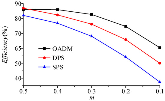 Figure 18 shows the efficiency curves under SPS control, DPS current stress optimization control, and the OADM at different m with P = 0.36. As shown, the two-degrees-of-freedom modulation provides flexibility for efficiency optimization, resulting in greater efficiency improvements compared to SPS control. Moreover, the proposed OADM is even more efficient than DPS with the same degrees of control freedom.